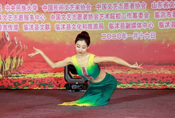 志愿服务活动主要分为培训讲座和乡村春晚联欢两部分。培训讲座中,我校音乐学院民乐系副教授张弩为大家讲述鼓圈文化;舞蹈学院研究生季文伊、张可馨带领大家学习“网红”舞蹈《火红的萨日朗》;美术学院影像设计系王涛老师讲授手机摄影相关知识。乡村春晚联欢中,我校音乐学院音乐学院声乐系副教授那红演唱歌曲《一杯美酒》、《我爱祖国的蓝天》;舞蹈学院研究生张可馨表演独舞《沂蒙山小调》;舞蹈学院研究生季文伊表演独舞《孔雀》;最后全体演出人员合唱《同一首歌》结束了联欢活动。